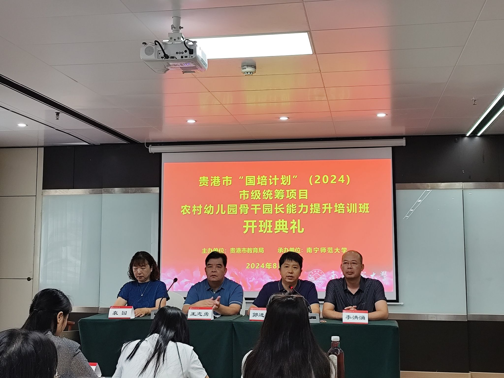 经过南宁师范大学和贵港市教育局的协同工作,于8月21日启动了“国培计划”(2024)——贵港市农村幼儿园骨干园长能力提升培训班的第一阶段,并于当天正式开班,开班典礼由南宁师范大学教师教育学院郭进喜主任主持。贵港市教育局王志勇书记出席典礼并讲话,贵港市教师培训中心李洪勇主任参加典礼并提出了培训要求。王志勇书记讲话中强调了园长作为幼儿园灵魂的重要性,并鼓励园长们珍惜学习机会,将所学知识运用到实际工作中。