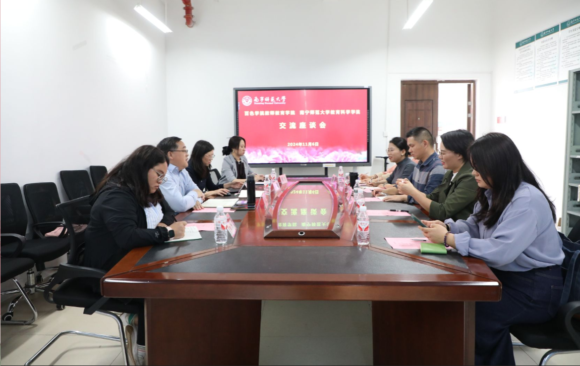 11月6日,百色学院教师教育学院院长杨秀富一行5人应邀到教育科学学院开展交流活动。此次活动在五合校区理综楼1004-1进行,教育科学学院院长、副院长以及学前教育系副主任和学院辅导员参会。会议由李强院长主持。