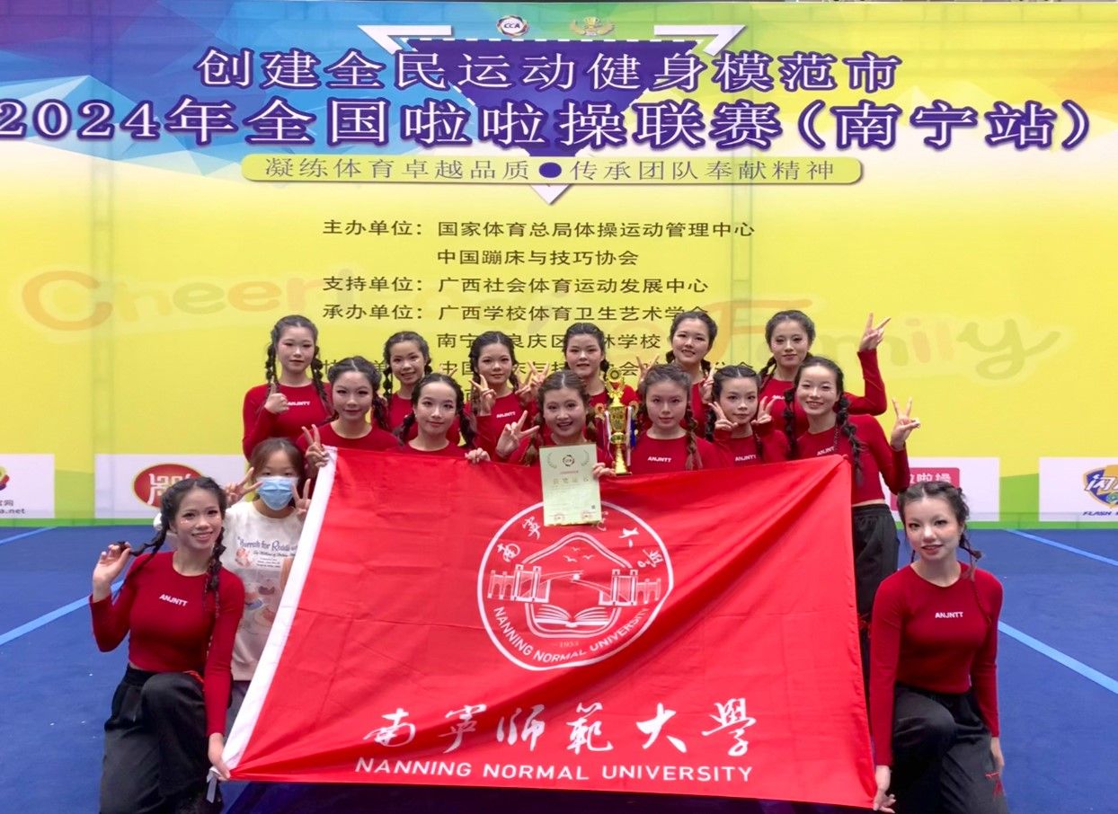 在2024年全国啦啦操联赛(南宁站)中,教育科学学院光之翼艺术团啦啦队以高标准、严要求训练队伍,坚持精益求精,运用丰富且具有感染力的表演,配合整齐规范的动作最终荣获公开青年乙组-街舞规定动作(2020版)-2级冠军。