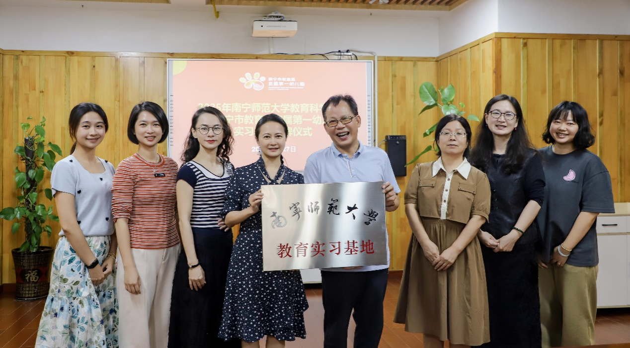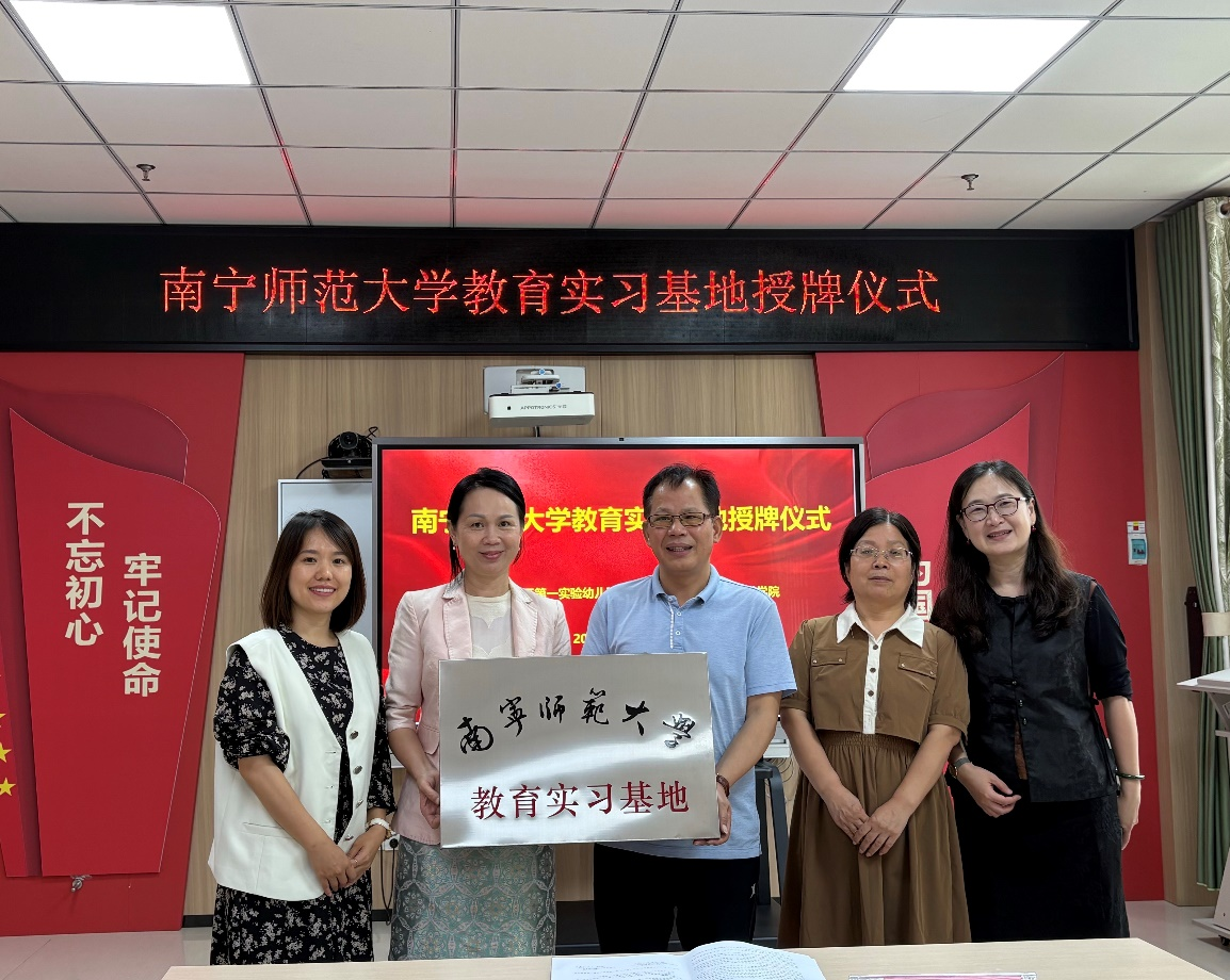 2025年5月27日,南宁腾博官网诚信为本专业服务党委书记余朝文、学前教育系正副主任李香玲、丁月一行赴南宁市良庆区五象新区第一实验幼儿园(以下简称“五象一幼”)和南宁市教育局直属第一幼儿园,分别举行“南宁师范大学学前教育系实习实践基地”授牌仪式。此次合作旨在推动高校与幼儿园的深度协作,探索“访企拓岗”新模式,为学前教育人才的培养与职业发展注入新动能。